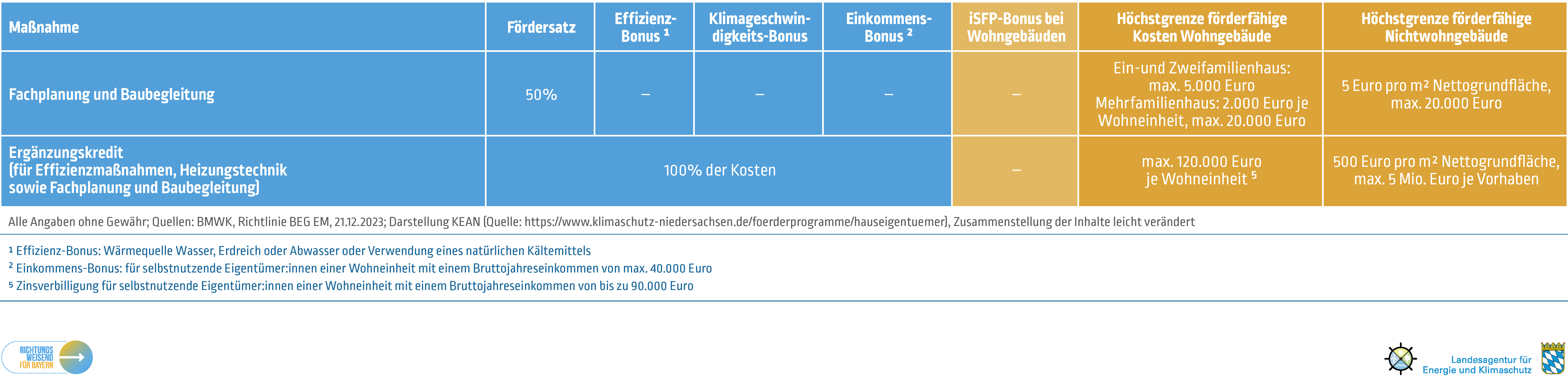 BEG – EM für Fachplanung, Baubegleitung und Ergänzungskredit